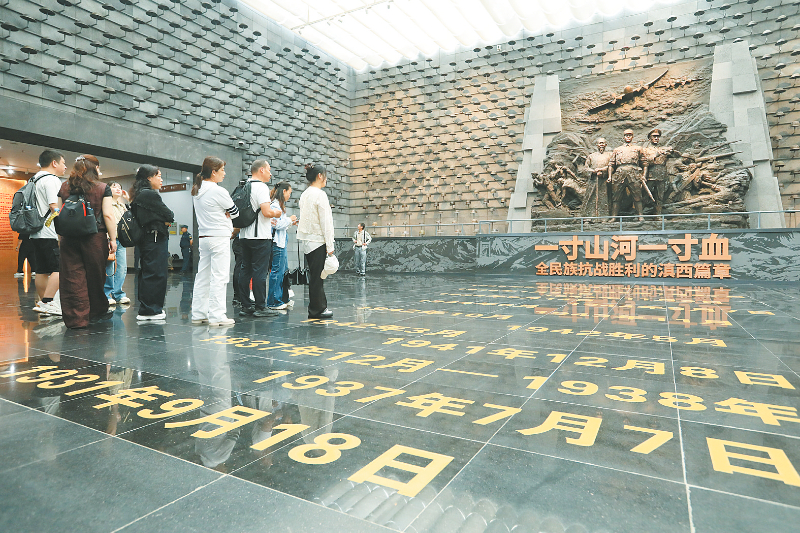 9月18日,游客在云南省腾冲市滇西抗战纪念馆参观“一寸山河一寸血全民族抗战胜利的滇西篇章”主题展览。今年是九一八事变爆发94周年。9月18日,人们来到各地抗战纪念场馆参观,铭记历史、缅怀先烈。新华社发(龚祖金摄)