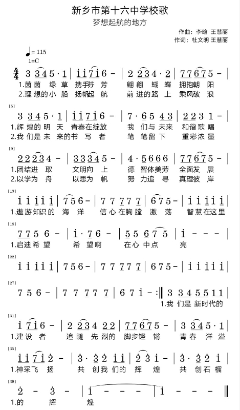 图为市十六中校歌词谱