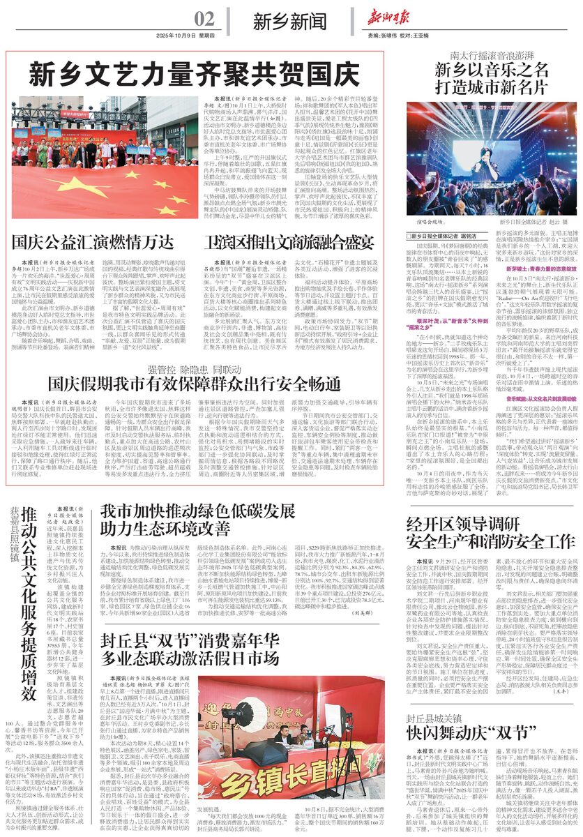 “我们希望通过讲好‘摇滚新乡’的故事,带动观众从‘两日观演’向‘深度体验’转变,实现‘流量变留量、人气变效益’,让音乐成为城市发展的新动能。看摇滚演唱会,游太行山水,逛胖东来......将成为今年新乡国庆长假的文旅消费新亮点。”市文化广电和旅游局党组书记、局长韩卫军表示。