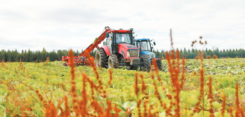 10月8日,在北大荒集团黑龙江红星农场第四管理区,农机在收获白菜。寒露时节,黑龙江省各地抢抓农时忙农事,田间地头一片繁忙景象。新华社发