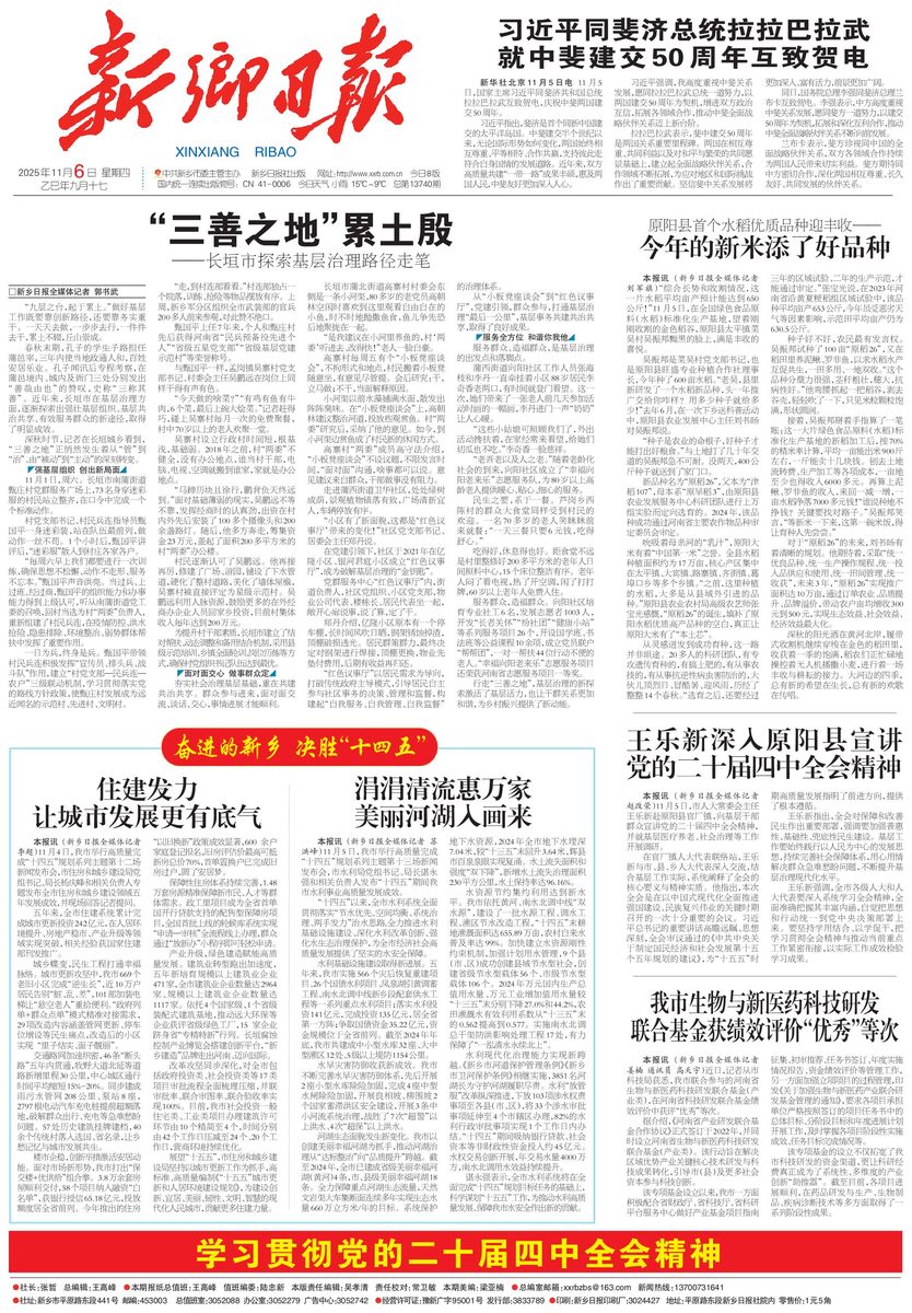 本报讯 (新乡日报全媒体记者 苏洪峰)11月5日,我市举行高质量完成“十四五”规划系列主题第十三场新闻发布会,市水利局党组书记、局长谌永强和相关负责人发布“十四五”期间我市水利事业高质量发展成效。