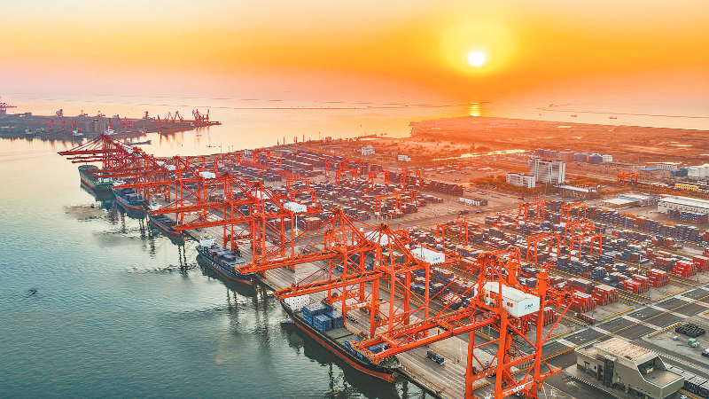 11月14日,轮船停泊在河北省唐山港京唐港区集装箱码头作业。新华社发