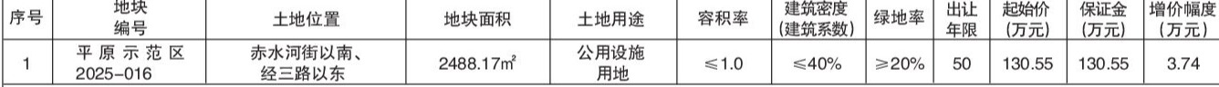 平原示范区2025-016地块拍卖报价时间为:2026年1月8日9时00分00秒;