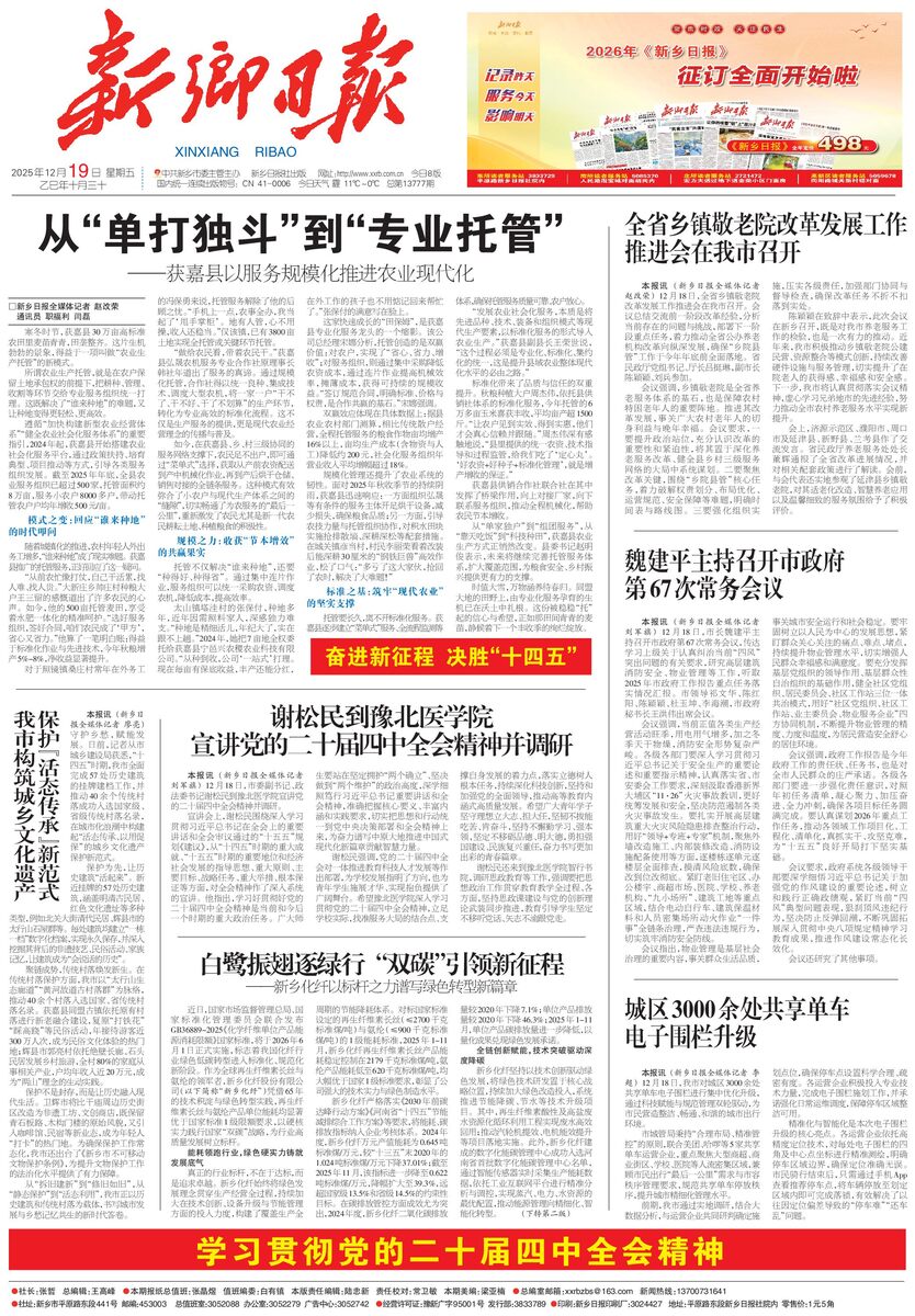从“单家独户”到“组团服务”,从“靠天吃饭”到“科技种田”,获嘉县农业生产方式正悄然改变。县委书记赵明俊表示,未来将继续完善托管服务体系,扩大覆盖范围,为粮食安全、乡村振兴提供更有力的支撑。