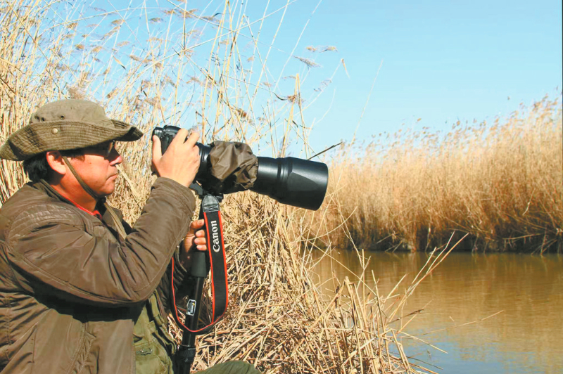 在封丘县陈桥黄河湿地深处,芦苇如海,随风起伏。一位身穿迷彩服的身影,已在苇丛中静伏了六个小时。长焦镜头缓缓转动,捕捉着风拂过苇叶的每一丝微颤。突然,一抹灵动的棕黄在取景框中一闪而过——那是“鸟中熊猫”震旦鸦雀。快门声轻响,在寂静的旷野中,这声音细微却坚定,仿佛一声跨越40年的心跳,连接着一个人与一条河的命运。这位“苇间隐者”,正是孟庆军(如图)。