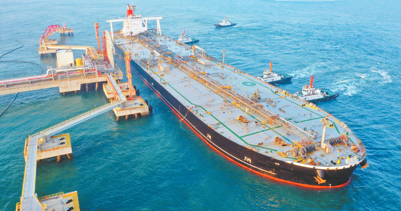 12月18日,一艘装载着石化原辅料的外籍船舶泊入国投洋浦油储码头30万吨级原油泊位(无人机照片)。自2025年12月18日起,海南自由贸易港正式启动全岛封关。 新华社记者郭程摄