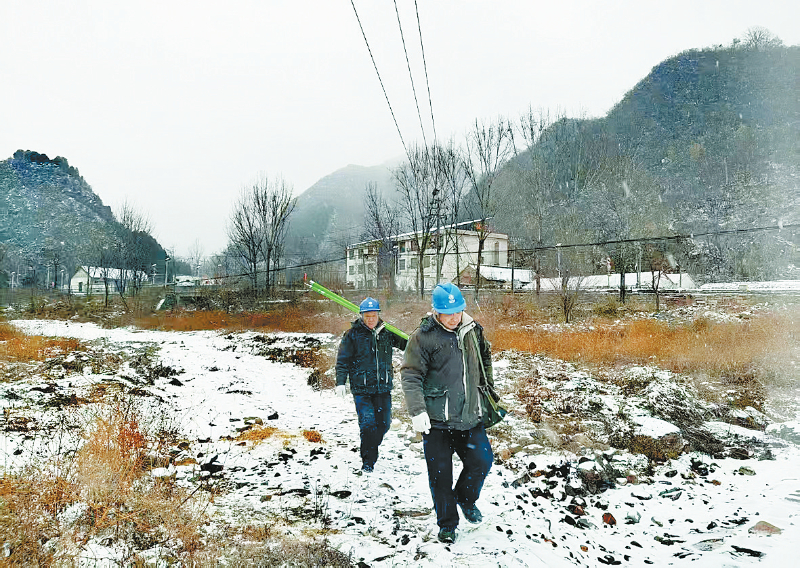 本报讯 12月12日,我市迎来了2025年冬季首场大范围降雪降温天气。为有效应对冰雪天气对电力设施可能造成的影响,确保电网稳定运行和群众可靠用电,辉县市供电公司侯兆川中心供电所迅速启动雨雪冰冻天气应急预案,对辖区内重要线路及易覆冰区段展开特巡,对重点用户全面开启今冬电力风雪保供“前哨战”(如图)。