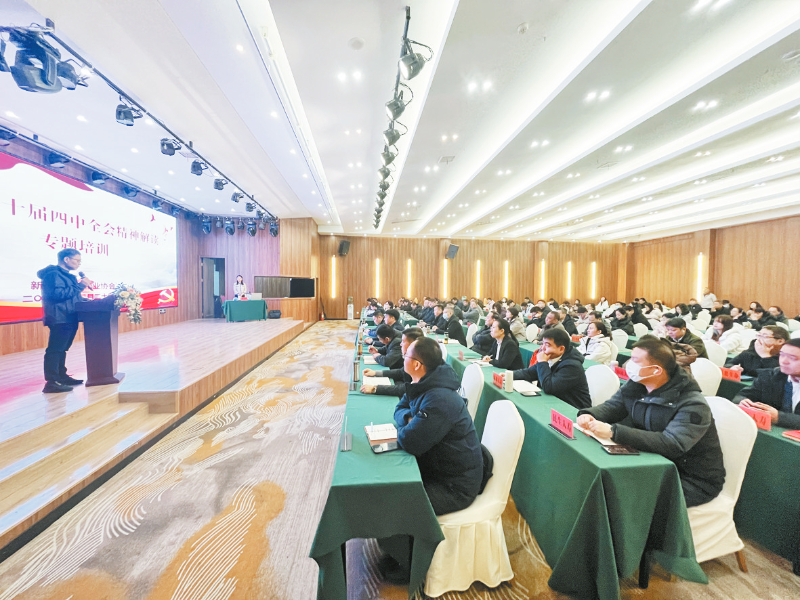 本报讯 12月24日,市保险行业协会开展党的二十届四中全会精神专题培训,邀请新乡市委党校讲师傅雅蕾授课。全市各会员单位总经理室成员、办公室相关人员参加培训(如图),市保险行业协会会长朱军利主持培训活动。