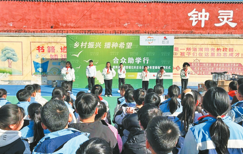 本报讯 近日,合众人寿新乡中心支公司走进辉县市薄壁镇圪针庄合众人寿希望小学,举行爱心助学公益活动暨“希望操场”揭牌仪式,用实际行动为乡村教育事业添砖加瓦(如图)。
