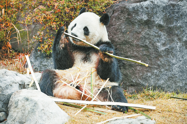这是2025年12月25日在日本东京上野动物园拍摄的大熊猫“晓晓”。