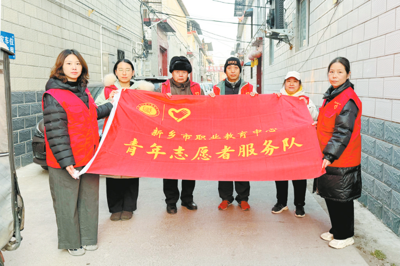 本报讯 1月16日,市职业教育中心的志愿者来到卫滨区胜利街街道南环社区,向所帮扶的李村新村捐赠分类垃圾箱,并组织党员义工服务队和青年志愿者开展“美丽清洁日”志愿服务(如图),重点对社区街道进行清扫保洁和环境提质工作,以实际行动落实文明城市创建要求,深化校社协同共建实效。