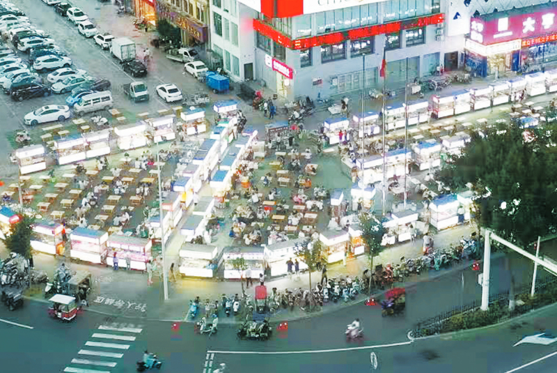 夜色渐浓,富达财富广场的夜市小吃一条街灯火温暖,人间烟火气正款款升腾。