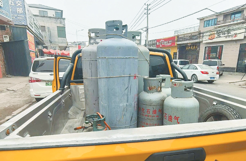 在检查过程中,工作人员发现大块镇块村营村一家厨卫电器经营部仓库存在严重安全隐患。该仓库面积仅约10平方米,却违规密集存放了大量液化气钢瓶,其中包括50公斤重瓶3个、15公斤重瓶4个以及5公斤重瓶4个。仓库内同时混杂堆放有燃气灶具及其他杂物,环境混乱。更令人担忧的是,该仓库地处临街商业区,后方紧邻村民住宅,一旦发生燃气泄漏事故或火灾,将严重威胁周边群众生命财产安全。