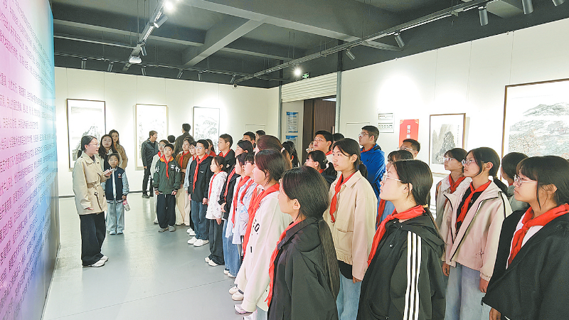 本报讯 春和景明,艺韵流芳。为深入落实“五育并举”教育方针,打通中学美育与高校艺术教育的衔接渠道,近日,经开区第一初级中学组织50名师生走进河南师范大学美术学院,参观“行中原·绘河山”全国美术名家写生创作学术展(新乡巡展),将课堂延伸至展厅,让美育实践落地生根(如图)。