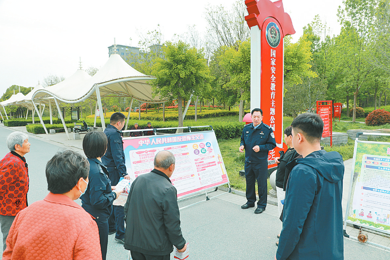 4月13日下午,原阳县公安局在原阳县国家安全教育主题公园开展国家安全教育主题活动。图为原阳县公安局党委委员、副局长邢朝波在为群众讲解国家安全相关知识。 孟令康 摄