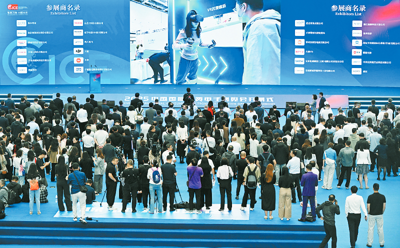 当日,以“智联万物AI赋未来”为主题的2025中国国际消费电子博览会在青岛开幕。本届展会设“智享生活”“寰球智领”“智联融通”“智慧未来”“智音芯动”和“无界智汇”六大展区,汇聚当下热门消费电子品牌与创新企业,带来众多互动体验与前沿智能科技成果。 新华社记者李紫恒摄