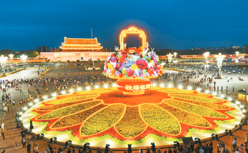 9月25日,2025年“祝福祖国”巨型花篮正式完工,亮相天安门广场与市民共度佳节。