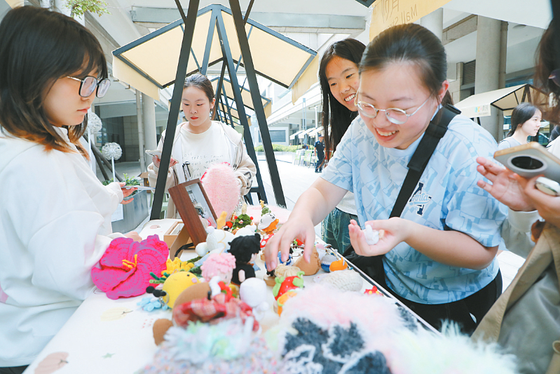 现场汇集了手工创意品、文创产品、3D模型、盲盒、科技产品和特色小吃等,全部由青年创业者精心打造。许多商品凝聚着他们无数日夜的心血,吸引了众多市民驻足选购。