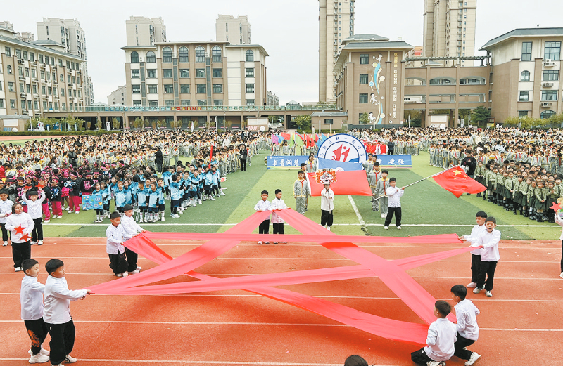 本报讯 10月9日,高新区新一街中学小学部操场上彩旗飘扬,鼓声阵阵,校第七届秋季田径运动会开幕(如图)。此次运动会以“燃情金秋,逐梦赛场”为主题,落实“五育并举”育人方针,践行“书香润慧,体艺润质”的办学理念。
