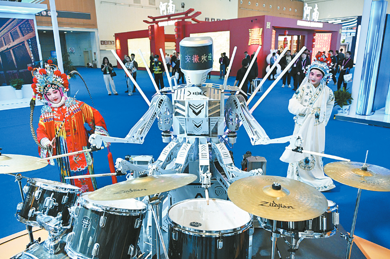 10月16日,演奏机器人在第十届中国国际版权博览会上表演。10月16日,第十届中国国际版权博览会暨2025国际版权论坛在青岛开幕。本届版博会以“数智引领未来,版权创新发展”为主题,设置五大板块,超1100家企业参展,集中展示全球版权领域数字化、智能化创新成果。 新华社记者 李紫恒 摄