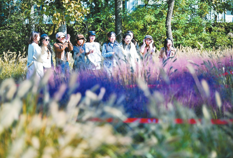 近日,位于天津市滨海新区的泰达植物资源库芊卉园的观赏草迎来最佳观赏期,狼尾草、粉黛乱子草等色彩斑斓,摇曳生姿,吸引不少游客游览拍照。