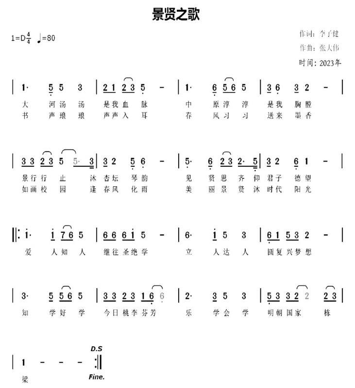 ——长垣市景贤小学校歌《景贤之歌》创作说明