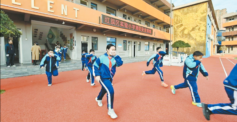 本报讯 为提升师生消防安全意识与应急逃生能力,筑牢校园安全防线,近日,红旗区实验小学组织全体师生开展消防安全演练活动(如图)。