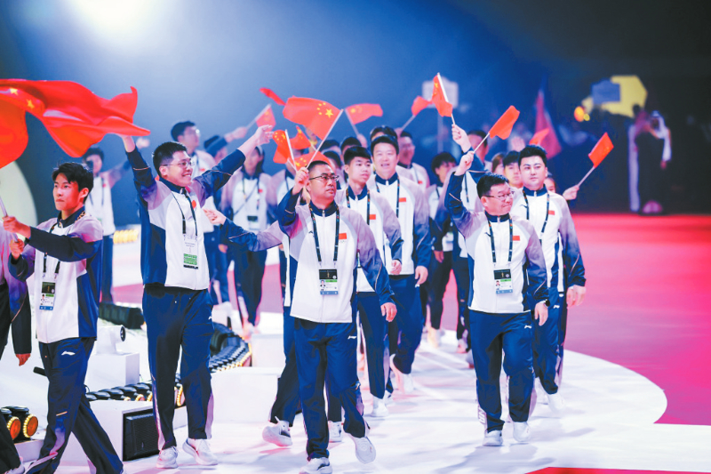 10月22日,中国代表团入场。当日,第三届亚洲青年运动会开幕式在巴林国际会展中心举行。 新华社 发(巴林亚青会组委会 供图)