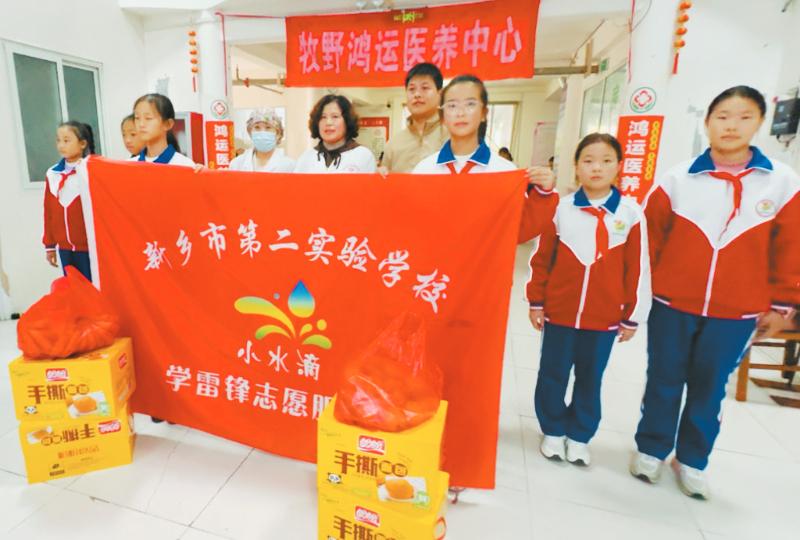 本报讯 (新乡日报全媒体记者 姚晶 通讯员刘子建文/图)重阳节前夕,市第二实验学校“小水滴”学雷锋志愿者服务队走进牧野区鸿运养老服务中心,开展“敬老爱老”慰问活动(如图)。