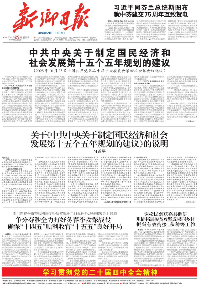 中共中央关于制定国民经济和 社会发展第十五个五年规划的建议