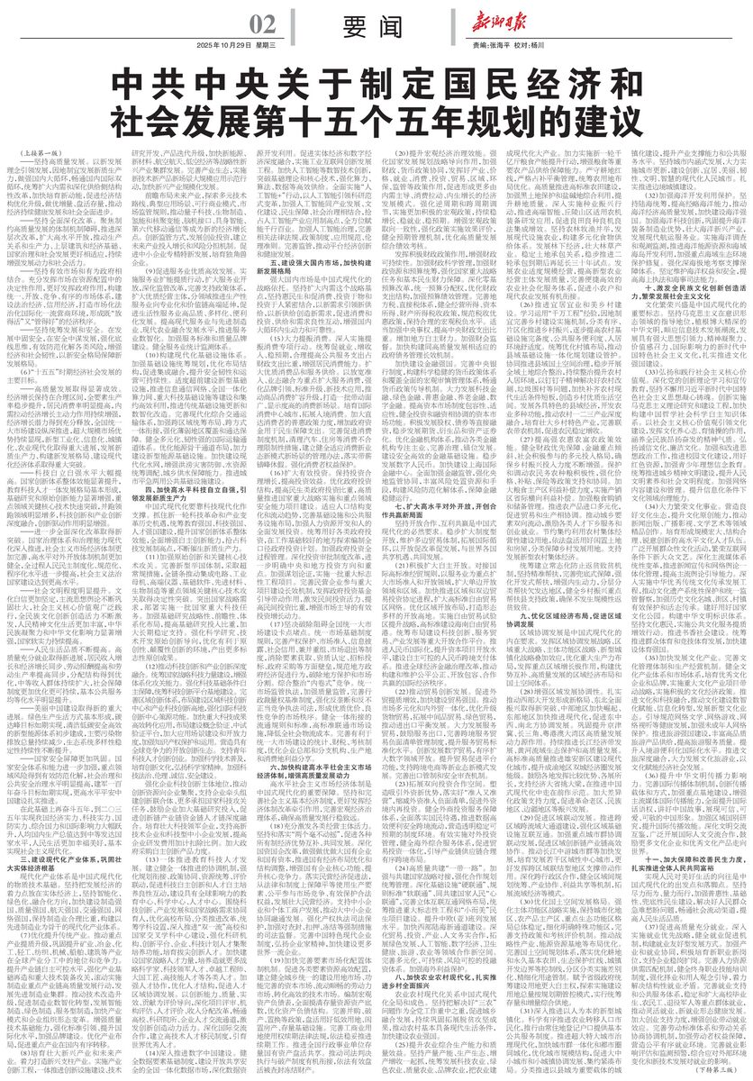 中共中央关于制定国民经济和 社会发展第十五个五年规划的建议