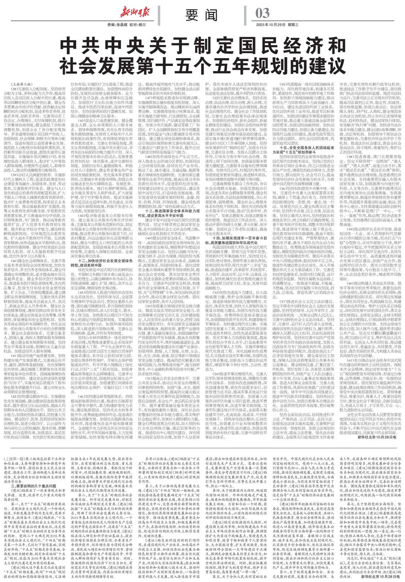 中共中央关于制定国民经济和 社会发展第十五个五年规划的建议