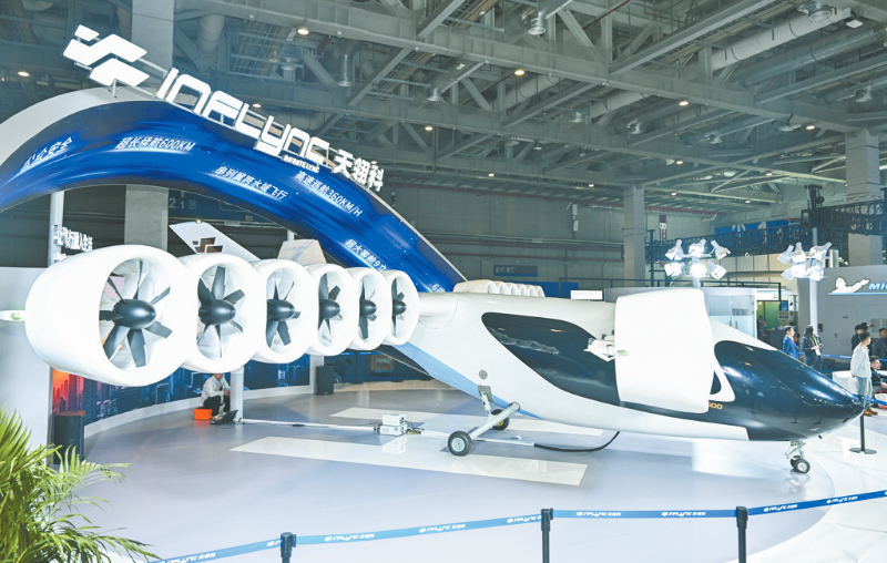 11月6日在进博会汽车及智慧出行展区天翎科展台拍摄的L600全尺寸倾转涵道翼eVTOL。这是该产品全球首发。在第八届中国国际进口博览会上,众多参展商将最新产品在进博会舞台上进行首发首展首秀,成为进博会上的独特风景。 新华社记者陈浩明摄