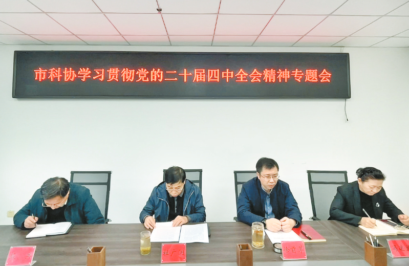 本报讯 11月11日,市科协召开党组(扩大)会议,专题学习贯彻党的二十届四中全会精神,研究部署全市科协系统贯彻落实举措(如图)。