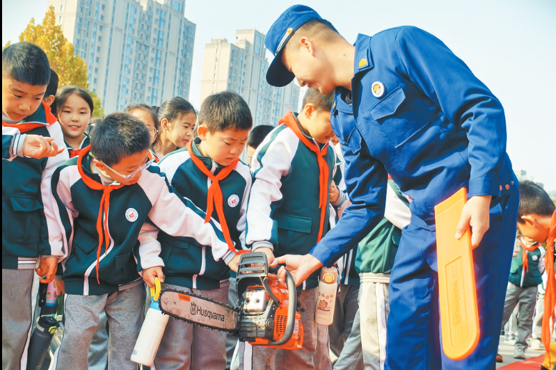 本报讯 为强化消防安全意识,提升应急自救能力,在第34个全国消防日到来之际,高新区柳青路小学少先队员在辅导员老师和家委会代表的带领下,走进高新区消防救援大队,开展了一场生动而富有教育意义的研学实践活动(如图)。