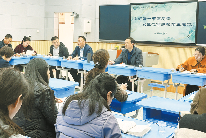 本报讯 深耕课堂强根基,领航赋能提质效。11月5日,市教育局党组书记、局长曹祖臣,办公室主任袁慧君,高新区社会事务局局长赵勇、副局长王慧、教研中心主任孟云,以及各小学校长来到高新区道清路小学调研指导,进一步推动高新区“局长点课、校长领航”系列活动深入开展,为区域教育高质量发展精准赋能。