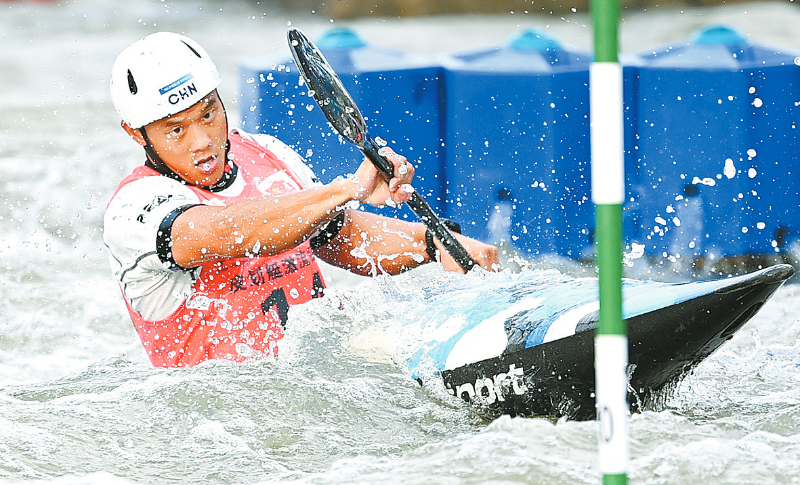 11月13日,福建队选手全鑫在比赛中。最终,他获得冠军。当日,第十五届全国运动会皮划艇激流回旋男子单人皮艇决赛在广州举行。