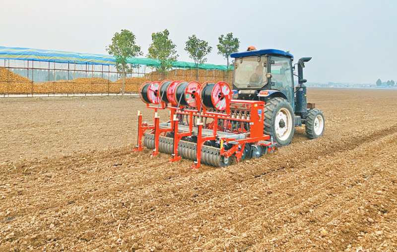 11月16日,获嘉县位庄乡大位庄村弘昌家庭农场正在进行小麦导航播种同步铺设滴灌带作业。面对前期严峻气候条件,我市一些新型农业经营主体采用适墒导航精播技术,并同步铺设滴灌带,利于后期精准水肥管理,又能有效促进麦苗促弱转壮、培育壮苗。