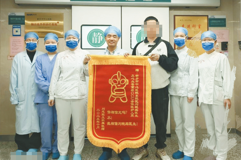 这场没有硝烟的生死救援,没有惊天誓言,却有医护团队分秒必争的坚守;没有华丽辞藻,却有默契协作的硬核实力。从急诊接诊到介入攻坚,从术后监护到康复指导,各环节无缝衔接。刘艳宾团队用专业与担当,诠释了“生命至上”的医者使命,而那面沉甸甸的锦旗,正是对这份守护最真挚、最厚重的赞誉。