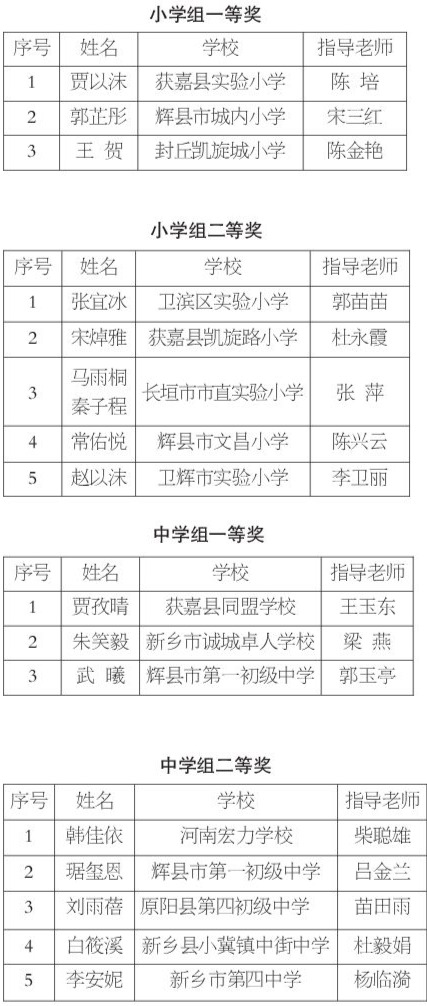 新乡市第三十二届爱国主义读书教育活动演讲大赛获奖名单