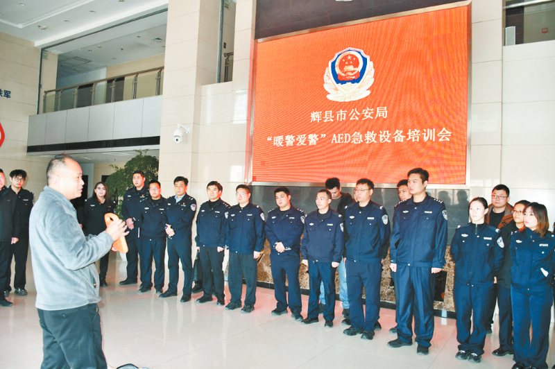 本报讯 为进一步做好爱警暖警工作,切实增强全局民辅警的安全防护意识,普及应急救护知识,提高民辅警应对突发事件的处置能力和自救互救水平,日前,辉县市公安局组织开展自动体外除颤器(AED)应急救护技能培训,该局各业务警种、派出所民辅警代表等50余人参加培训(如图)。
