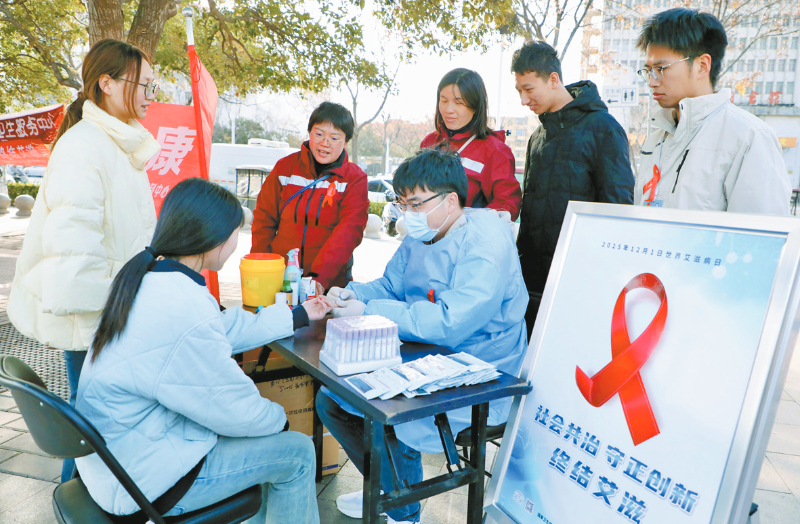 12月1日,是第38个“世界艾滋病日”,今年的宣传主题为“社会共治、守正创新、终结艾滋”。为筑牢防艾防线,我市集中开展宣传活动,通过科普展板、义诊咨询、趣味答题等形式,普及防艾知识,传递人文关怀,筑牢全民防艾坚固防线。图为市疾控中心在活动现场提供HIV自愿咨询检测服务。 新乡日报全媒体记者赵云摄