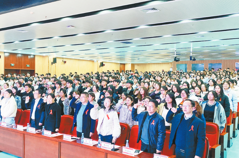活动中还穿插了艾防旗帜传递仪式、集体艾防宣誓及精彩文艺表演。飘扬的艾防旗帜传递着责任,铿锵的誓词回荡在校园。此次活动的圆满举办,不仅搭建了权威的艾防知识传播平台,更凝聚起青年一代抗艾防艾的强大力量,为构建无“艾”健康校园奠定了坚实基础。
