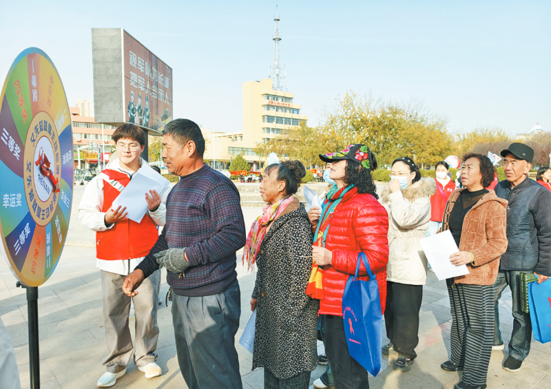 本报讯 “大姐,快来答题吧!在市疾病预防控制中心宣传点答完题还能抽奖,我刚才就抽中了一条围裙。”12月1日,我市市区40多家医疗卫生单位围绕2025年“世界艾滋病日”宣传活动主题,在牧野广场开展了形式多样的宣传活动。