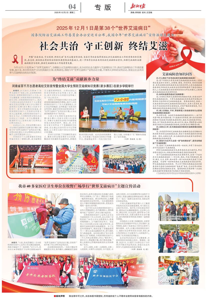 我市40多家医疗卫生单位在牧野广场举行“世界艾滋病日”主题宣传活动