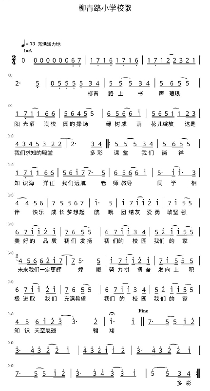 高新区柳青路小学校歌词谱