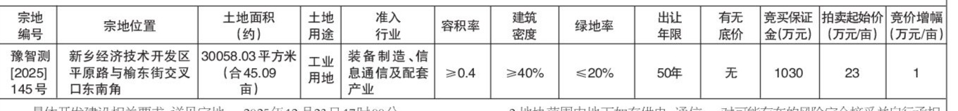 拍卖报价时间为: 豫智测[2025]145号宗地:2025年12月24日11时00分。