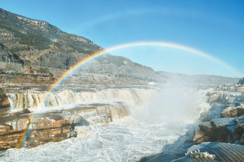 12月3日,在山西吉县黄河壶口瀑布景区拍摄的“双彩虹”景观。