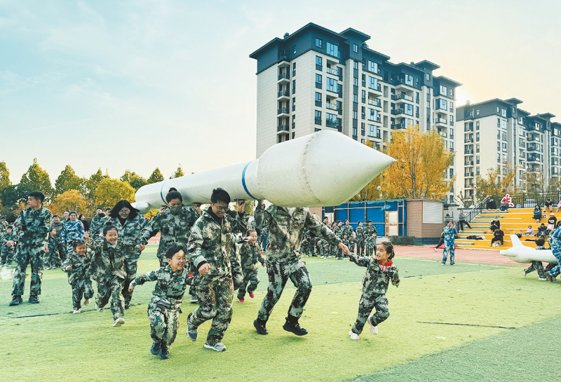 本报讯 近日,高新区牧野崇文幼儿园举办以“中国力量·冬季大拉练”为主题的亲子运动会(如图)。活动将国防教育融入亲子运动,以“海陆空三军”为游戏载体,让全体幼儿和家长在趣味体验中感知强国梦、强军梦,激发热爱祖国的朴素情感,为幼儿爱国教育开辟了生动的实践路径。这场集国防教育、体能锻炼、亲子互动于一体的特色活动,也取得了圆满成效。