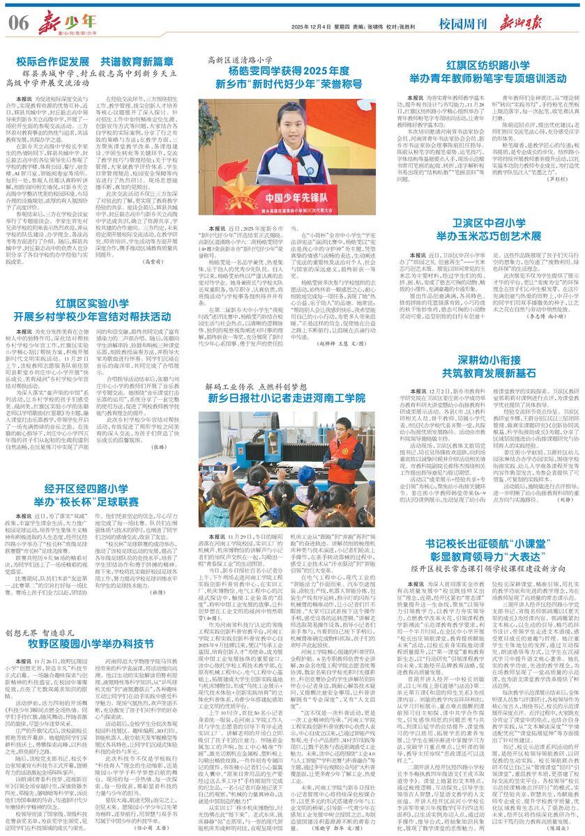 杨皓雯同学获得2025年度 新乡市“新时代好少年”荣誉称号